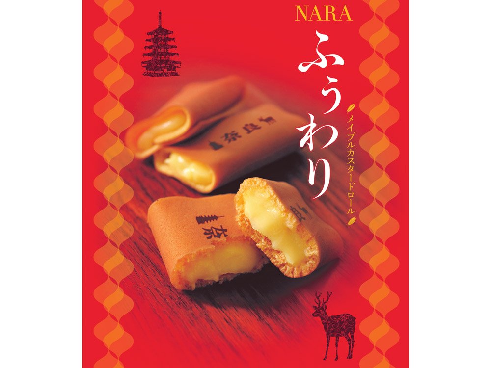 ふんわり、しっとり焼き上げた上質の生地で、なめらかなメープル味のカスタードクリームを包みました。上品な甘さの和風カスタードロールです。