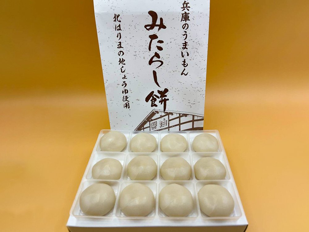 高速道路限定販売 北播磨の地醤油でみたらしのタレを作り、もっちりとしたお餅で包み込んだみたらし餅です。
