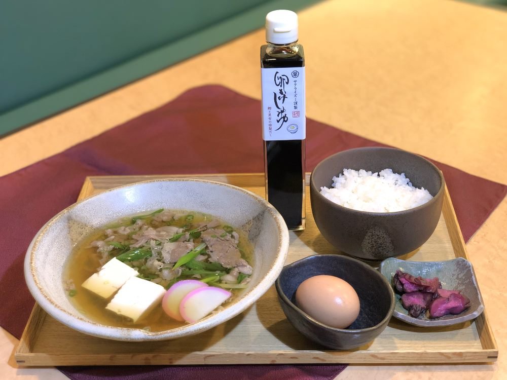 お肉は黒田庄和牛、卵は兵庫県市川町のタズミの卵。地元加西市の高橋醤油の醤油を使用したメニューとなっています。