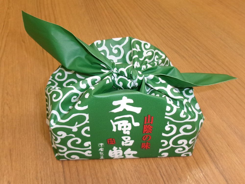慶びごとには、大風呂敷に祝いの品を包む昔からの風習をモチーフにした和菓子です。ひと口大の“きなこ餅”に名産の二十世紀梨で作った特性の“みつ”をかけて御堪能あれ。