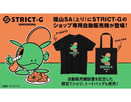 E2 山陽自動車道 福山SA(上り線)でガンダムの限定Tシャツやトートバッグが買える自販機を設置!さらに西日本初 1/12 スケールの RX-78-2 GUNDAM立像も登場します!