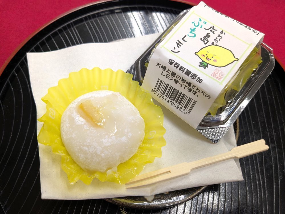 保存料無添加、瀬戸内産レモンをつかった大福です。地元もち屋が作った新定番の逸品です。