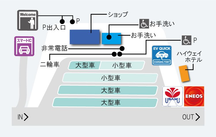 スマートICから出る場合は、レストラン・トイレなどをご利用できません。ご利用される場合は、外のお客様駐車場をお使い下さい。 -