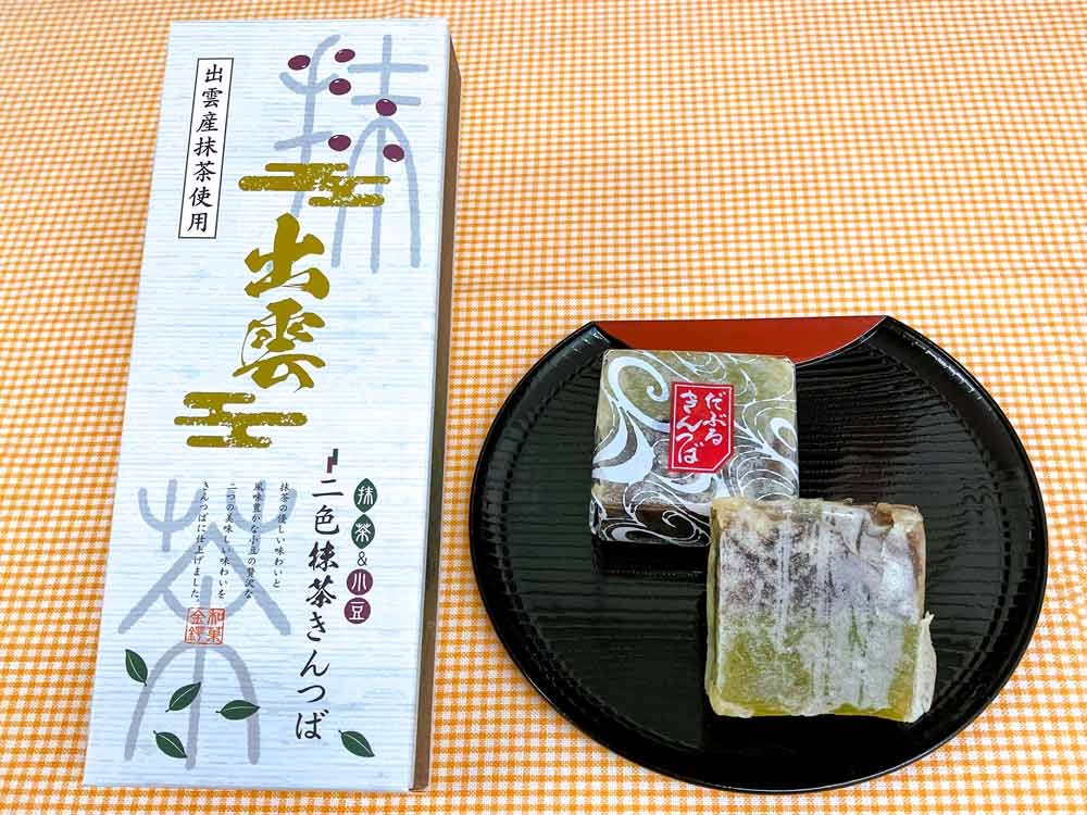 出雲市産抹茶を使用した抹茶餡、風味豊かな小豆餡、2種類の味が楽しめるきんつば。島根土産を買い忘れた方にもおすすめ!