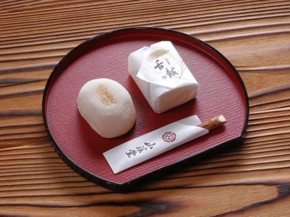 山口県代表銘菓、山陰堂の舌鼓。かつて『舌鼓』と呼ばれていたが、当時の総理大臣寺内正毅元帥が「このような美味しい菓子であれば名菓舌鼓と改称したほうがよかろう」と述べ『名菓舌鼓』になったという逸話が残っています。求肥と白こし餡が一体となった上品なお菓子です。
