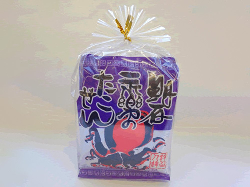 当店一番人気商品、明石永楽堂のたこせん。地元明石のたこを使用し特製の甘辛たれで味付け。お土産としても、車内での自己消費としてもお喜び頂ける商品です。 ※スタッフ イチ推し!商品とは?地域色豊かな商品や店舗自慢の商品です。
