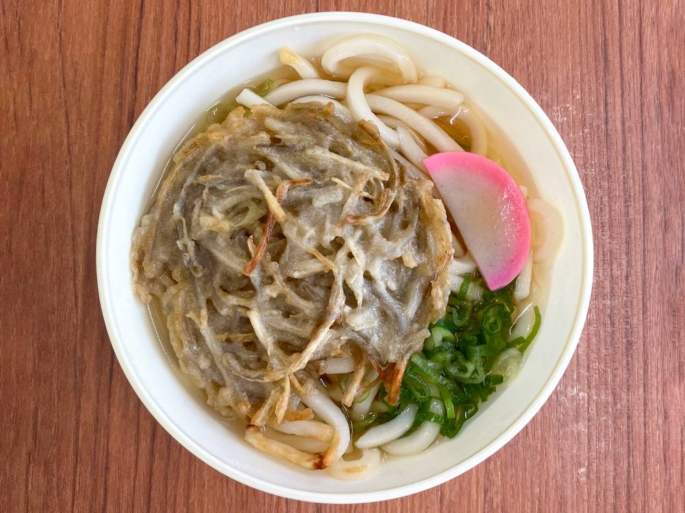 食べ応えバッチリの大きな国産ごぼう天にどこか懐かしい風味の麺とだし!!心も体もあったまる一品です。