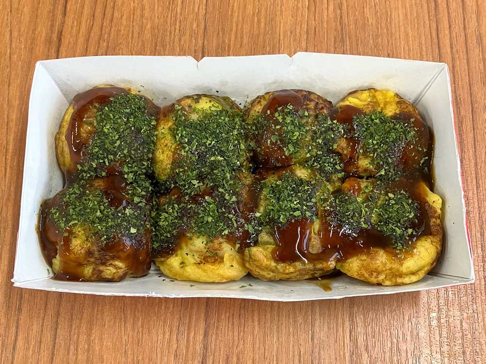 たこ焼き専門店『大八』名物!!刻んだたこにキャベツ、たっぷりネギのヘルシーかつ満足のたこ焼きです。