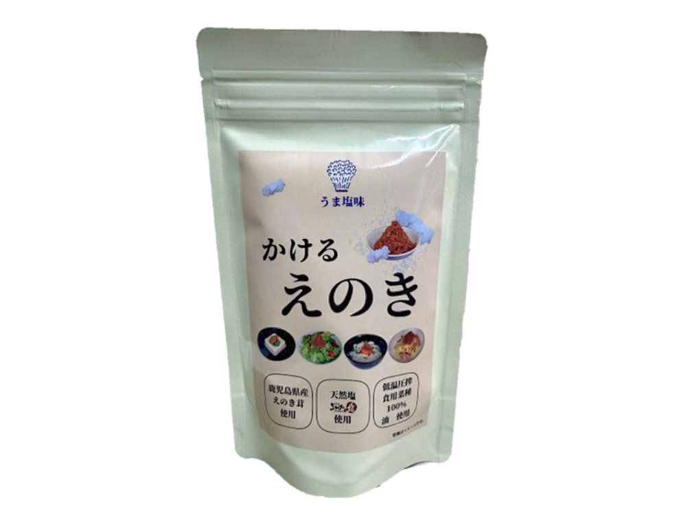 鹿児島県産のえのき茸を使用したふりかけタイプの商品です。ご飯やサラダ、冷ややっこにかけるだけで手軽にうまみがプラスされます!