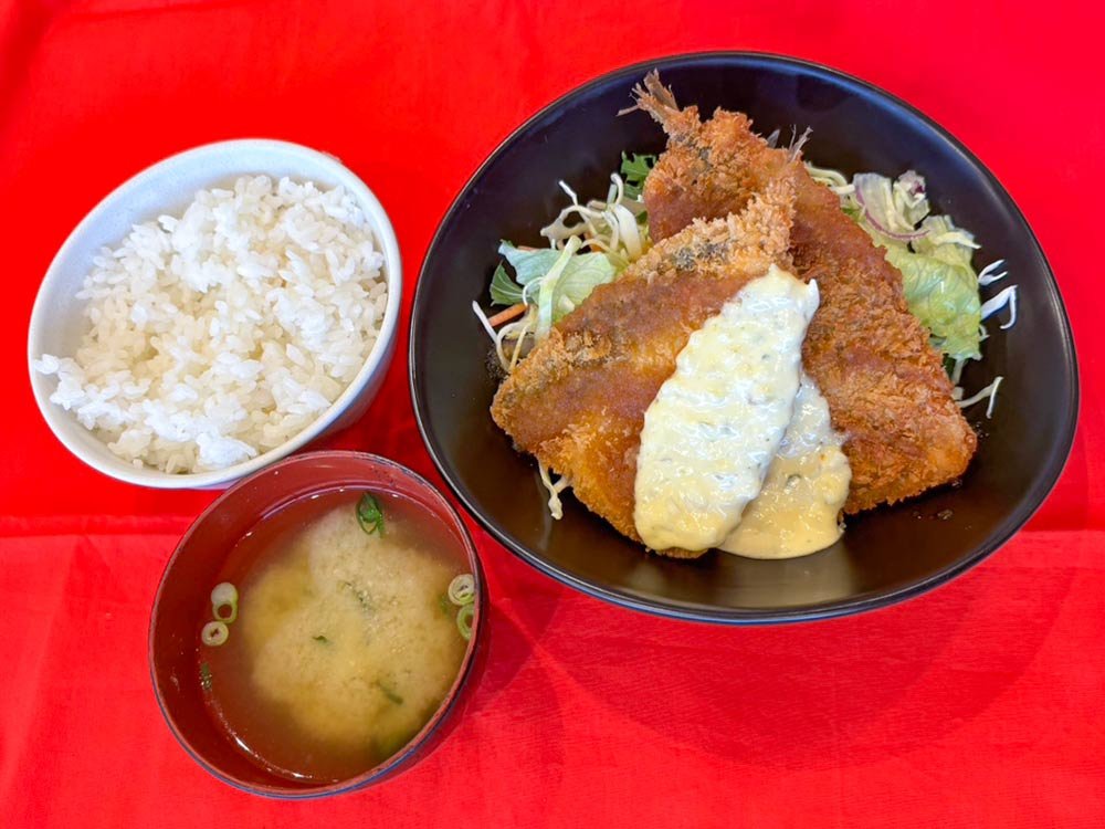 山田の新定番メニュー!甘辛いタレとたっぷりのタルタルソースをジューシーな唐揚げに絡めて食べる大人気の一品。ご飯とみそ汁も付いて「迷ったらこれ!」というメニューです。