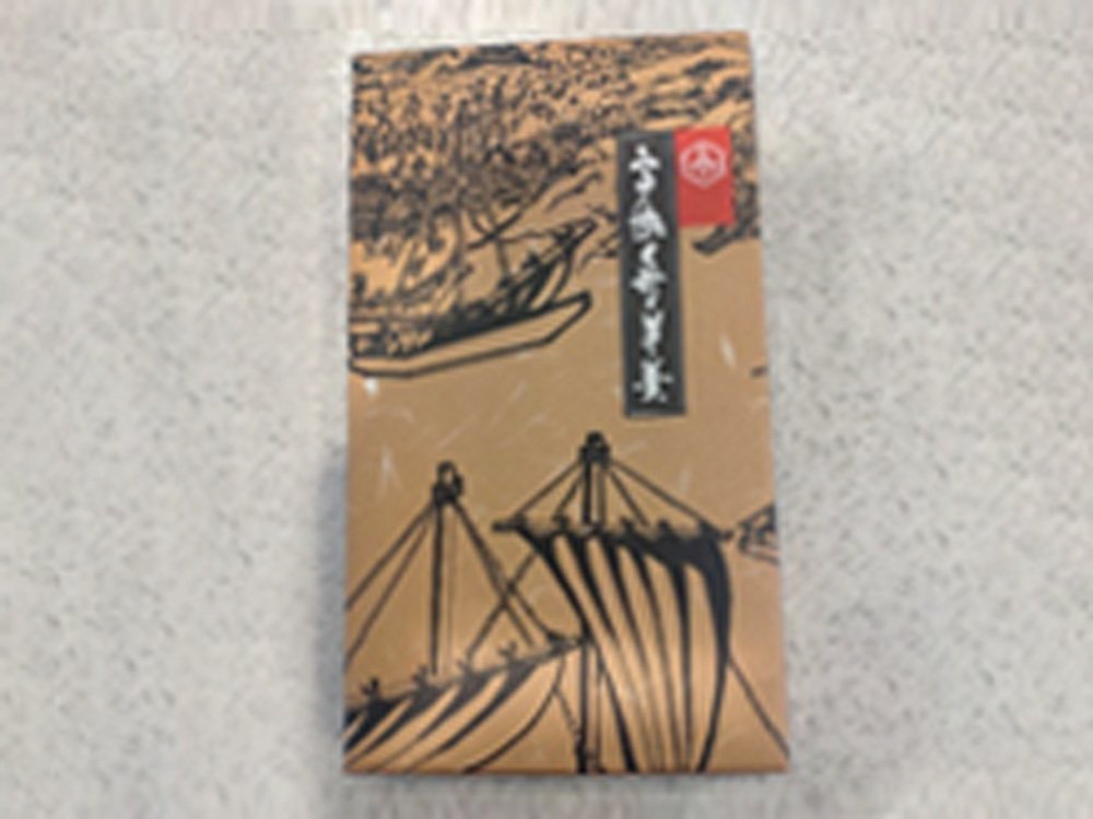 大河清流でみられた高瀬舟の「結ぶ心」を今に伝える吉見屋の高瀬舟羊羹。約3週間程度で表面に薄くシャリ(表面糖化)がきたころが食べ頃です。