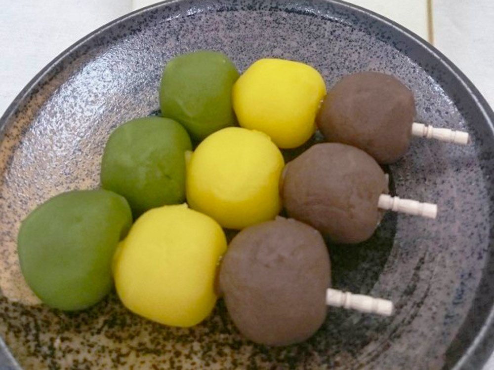 抹茶・黄・小豆、3色のあんの中にお餅の入った、夏目漱石の小説「坊ちゃん」に因んで作られた、四国道後銘菓です。