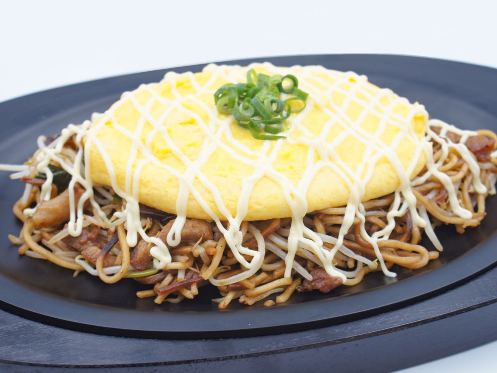 広川SA(上り線)限定!!想夫恋焼きそばにふわふわなオムレツがのったクリーミー焼きそばです。