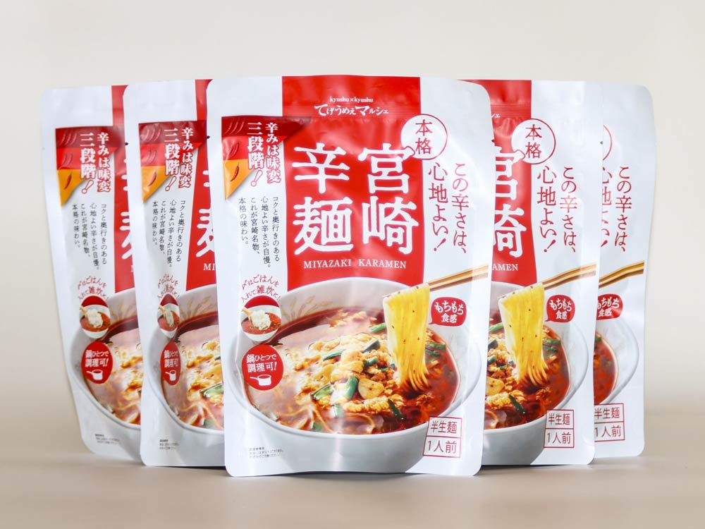 飲食コーナーで販売している宮崎辛麺を袋タイプにし、お土産として新登場。鍋ひとつでできる手軽さと、辛さを調節できる便利さに加え、旨さにもこだわっています。