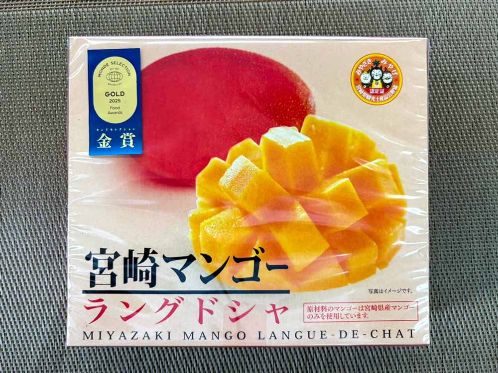 宮崎土産と言えばこれ!!マンゴーを練りこんだチョコをラングドシャで挟んだ商品です。