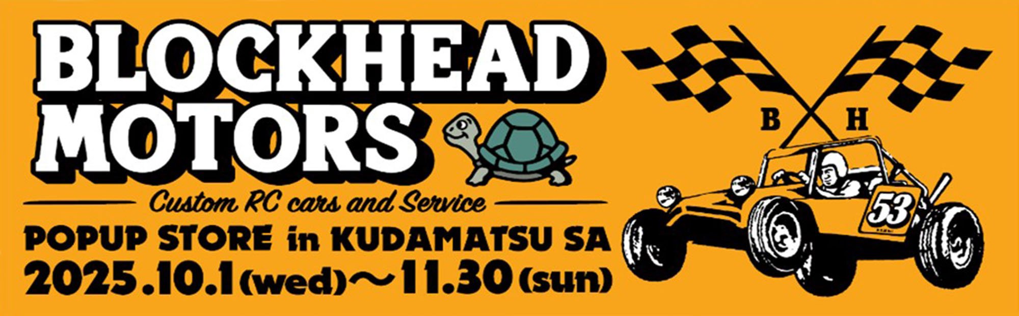 E2 山陽自動車道 下松SA(下り線)では大好評だった昨年に引き続き、「BLOCKHEAD MOTORS POPUP STORE in KUDAMATSU SA」を開催いたします。