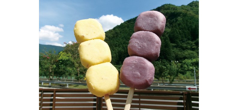 「おいも団子」「紫芋団子」(各310円)2個ご購入で20円引き!