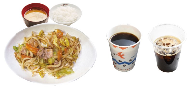 「骨付き鳥味うどん焼き定食」(1,050円)ご注文でモテナスコーヒー50円割引券プレゼント!