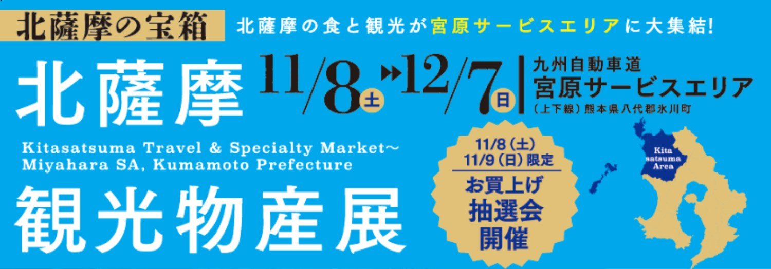 鹿児島県北薩摩地域の「食」「観光」の魅力を味わえる物産展となっておりますので、九州自動車道をご利用の際は、ぜひ宮原SA(上下線)にお立ち寄りください!