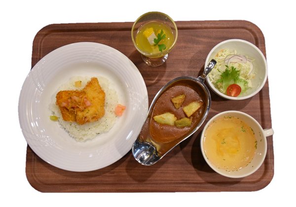 | ①川渡り食堂の笑顔輝くトマトチキンカツカレー | ||