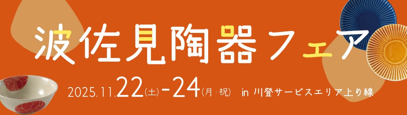 2025年11月22日(土曜)~24日(月曜)、E34 長崎自動車道 川登SA(上り線)にて「波佐見陶器フェア」を開催いたします。