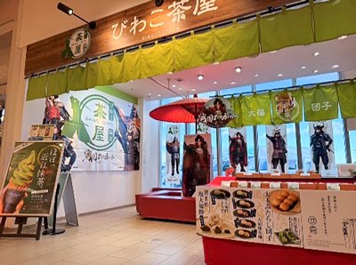 | 「びわこ戦国ディスカバリー」の武将キャラクターと大津SA(下り線)「びわこ茶屋」がコラボし、フォトスポットの設置や期間限定メニューを販売中です。 | ||