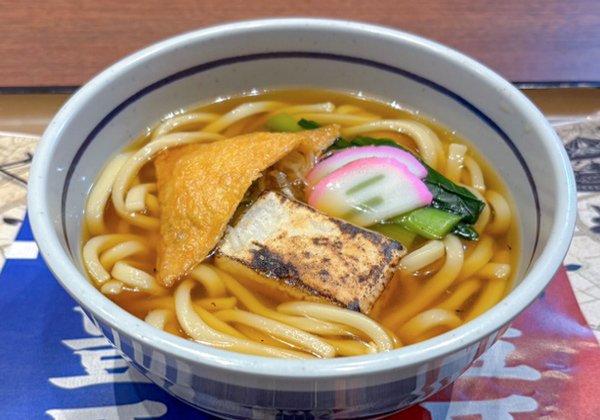 | 「一騎当千」のとおり、武将の力強さを表現。お揚げと「力餅」をのせ合戦に向かう武将をイメージした出汁の効いたうどんです | ||