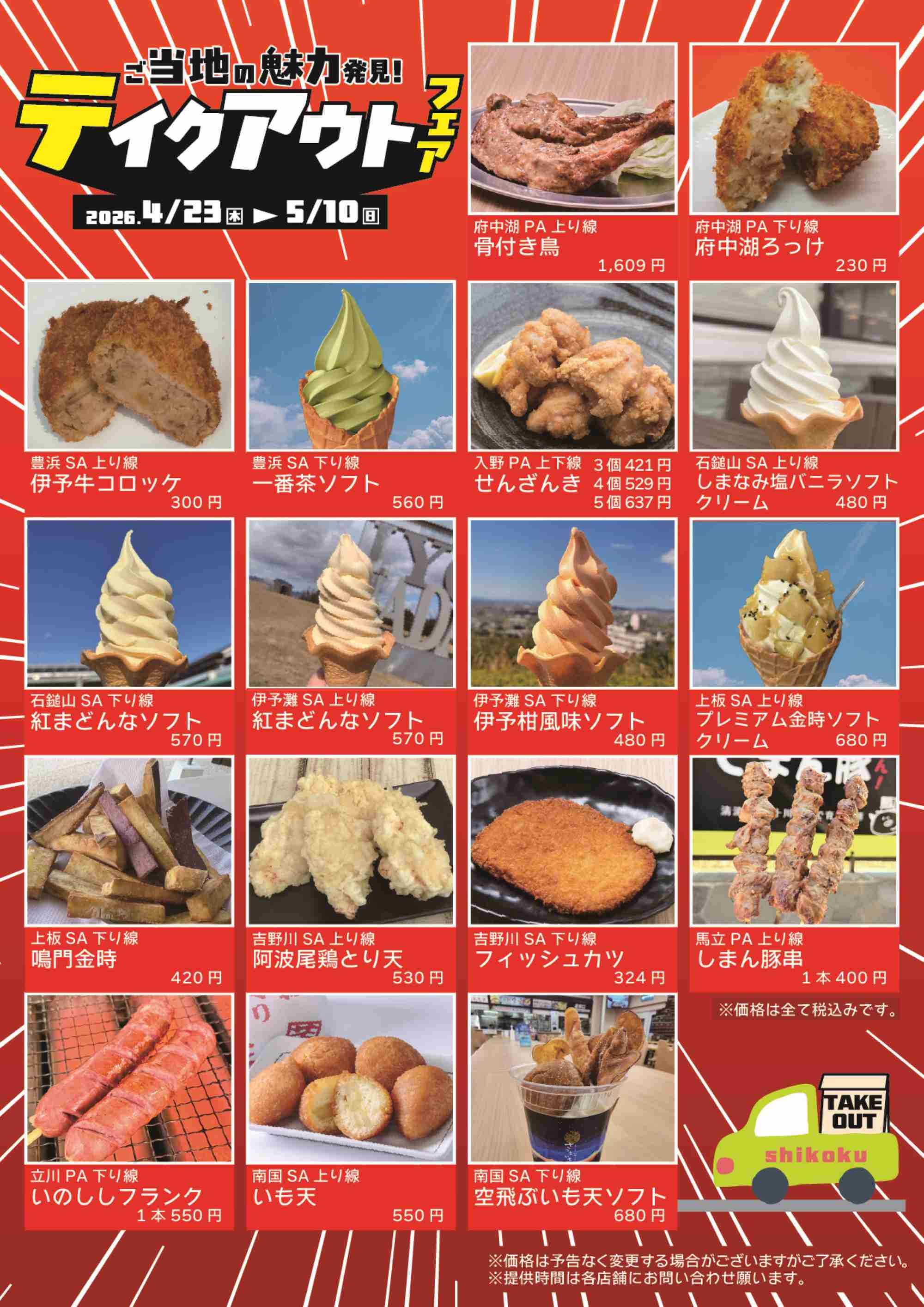 四国のSA・PA18店舗で「ご当地の魅力発見!テイクアウトフェア!」を開催します。