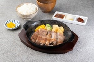 ③ごはん処ほとめき 「八女もち豚ステーキ鉄板」