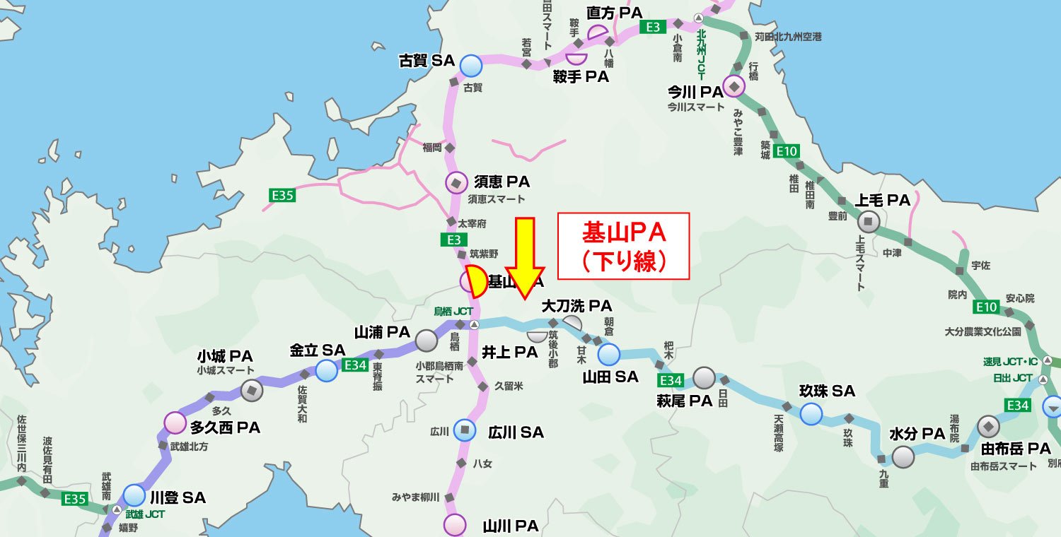 E3 九州自動車道 基山PA(下り線)のロッテリアコーナーは、改修工事に伴い下記のとおり営業を一時休止いたします。