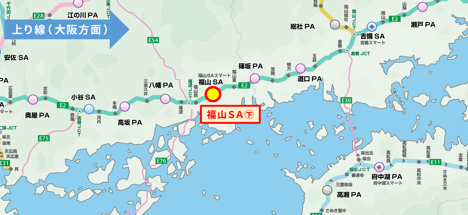 E2 山陽自動車道 福山SA(下り線)ガスステーションでは、配管工事等に伴い、軽油の給油を一時休止いたします。