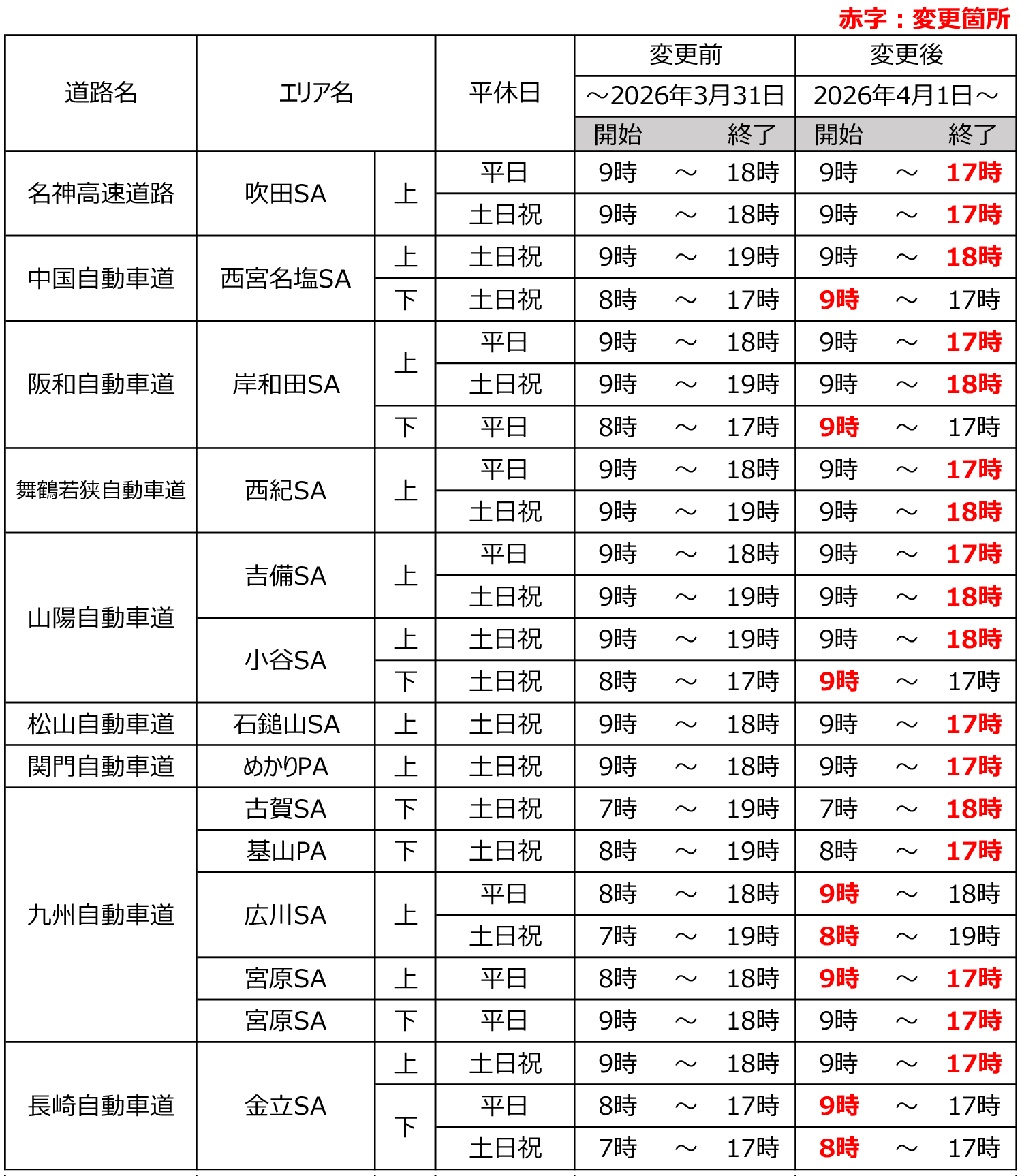2026年4月1日(水曜)から下記インフォメーションの開設時間を変更いたします。