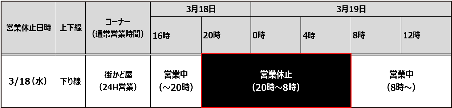 2026年3月18日(水曜)20時~翌8時(通常営業時間:24時間営業)