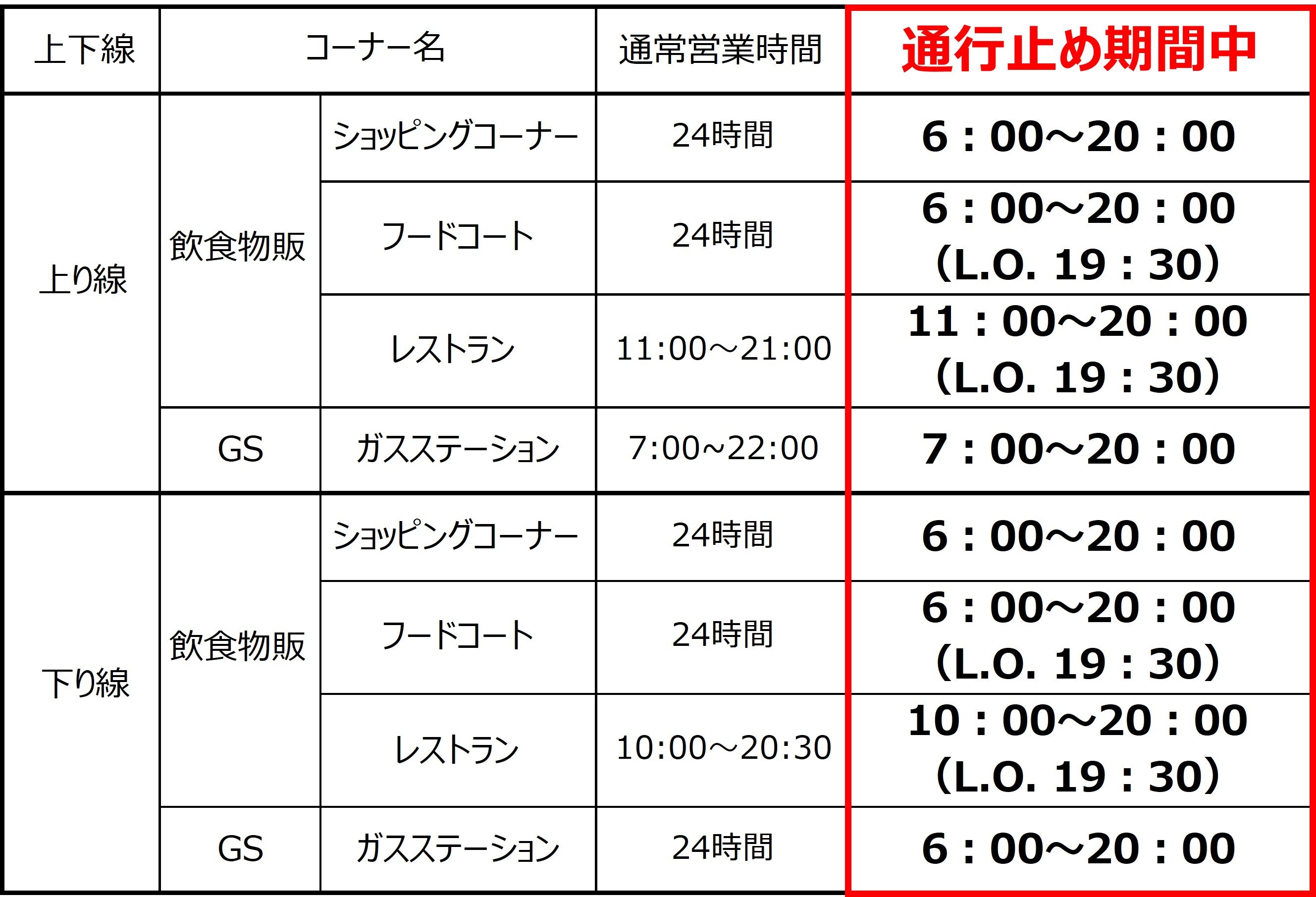 阪和道リニューアル工事の夜間通行止め(泉南IC~和歌山JCT)に伴い、営業時間を短縮させていただきます。