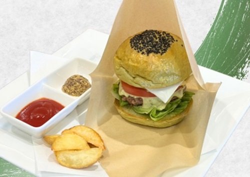 丹波の特産品「丹波篠山茶」を練りこんだお茶の風味を感じるバンズとトッピングに「山の芋」が入ったハンバーガー。このハンバーガー1つで丹波篠山の魅力が楽しめます。