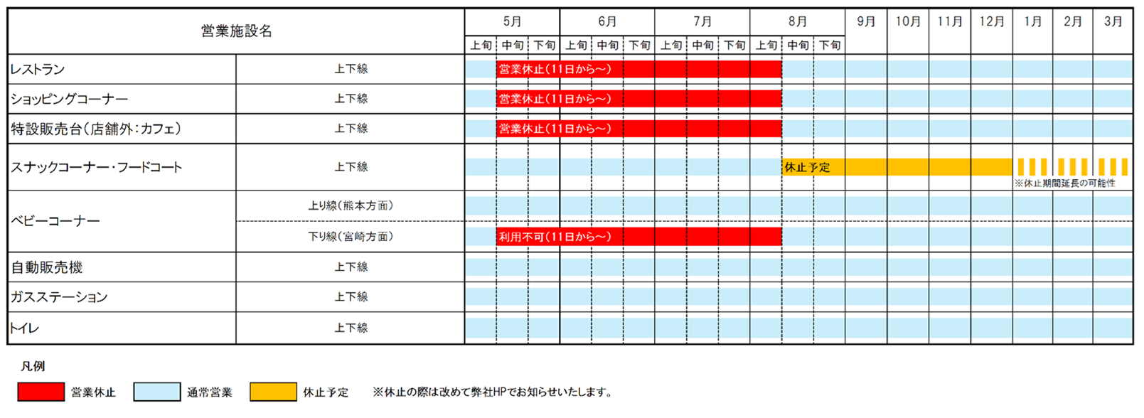 ※工事の状況により、休止期間を延長する場合があります。営業休止終了の際は、改めてNEXCO西日本ホームページでお知らせいたします。